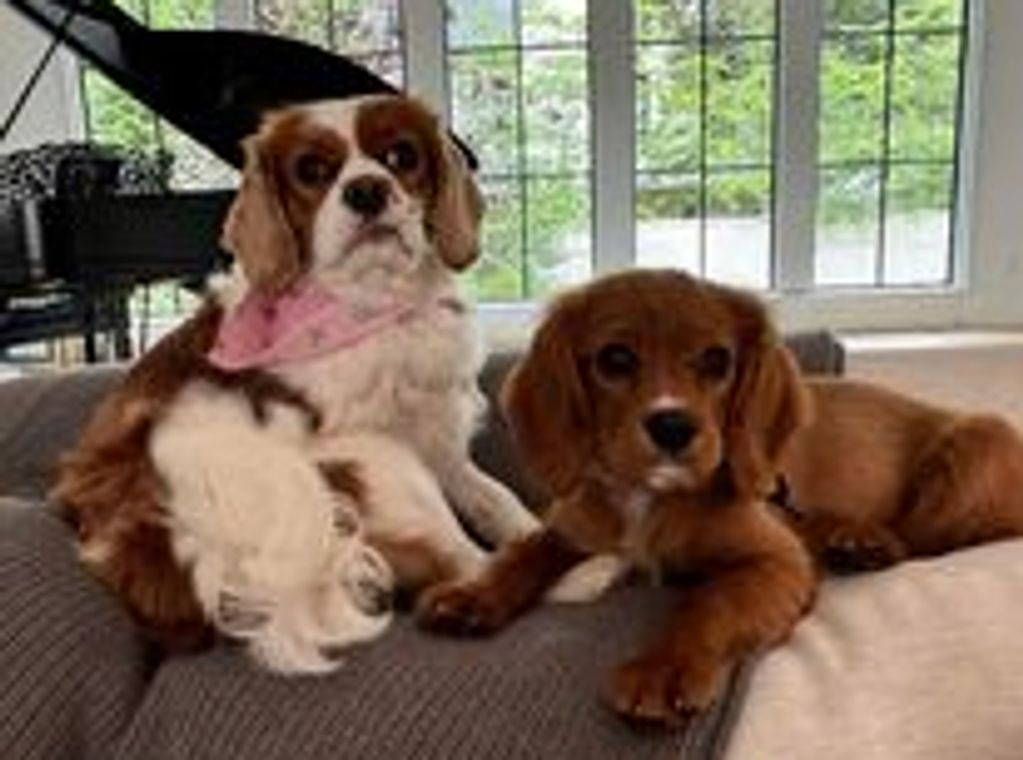 Puddles (Blenheim), daughter of Robin and Rover, and Splash (formerly Mustang) the son of Wendy and Rover.